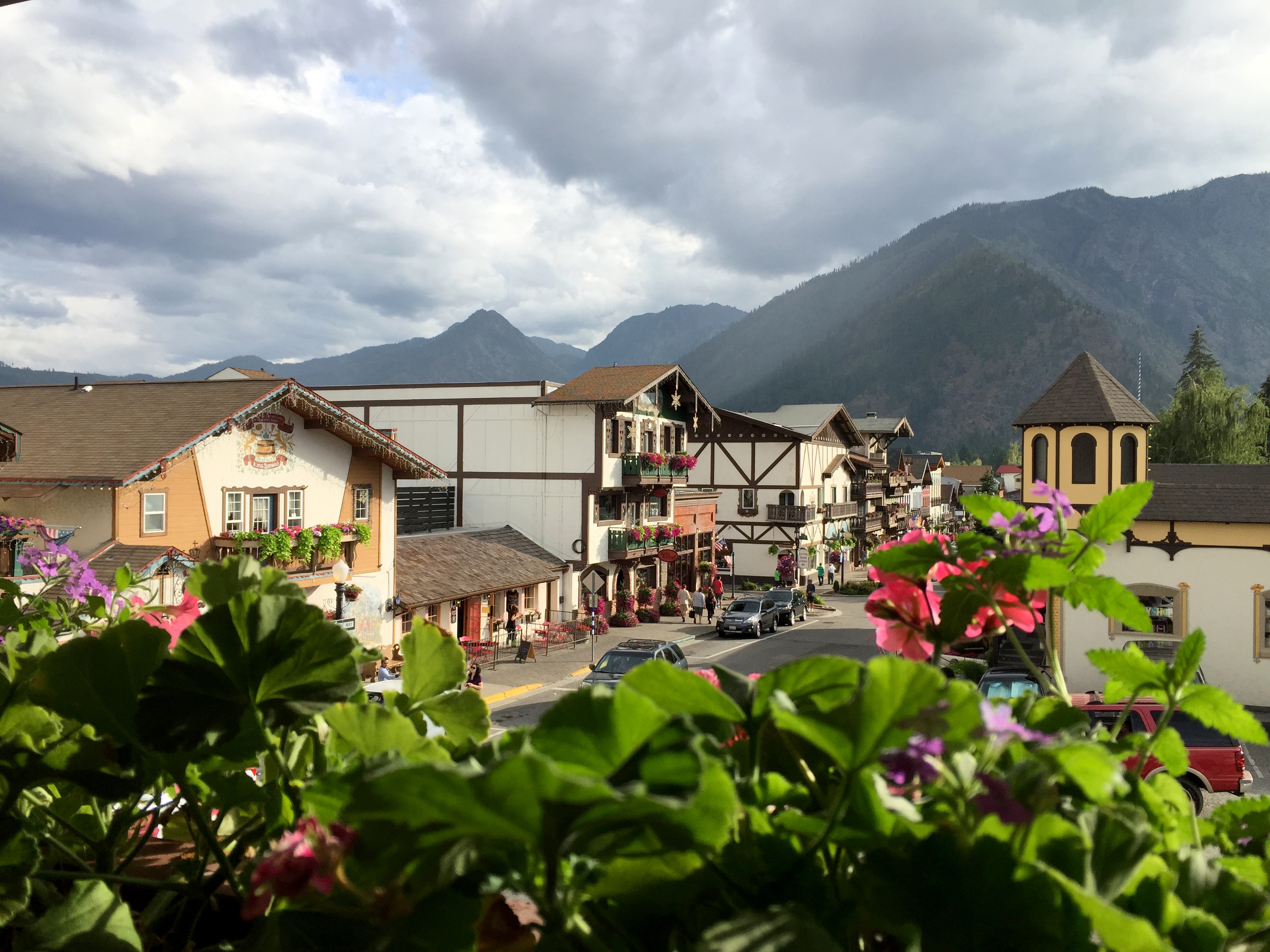 Now then, America has its places that might almost have been in Europe. There’s a Bavarian village called Leavenworth in Chelan County in Washington, at the foothills of the Cascades. When its sawmill industry died and the Great Northern Railway Company was re-routed around the city, Leavenworth was on the verge of an utter breakdown. Enterprising minds, in the early ’60s, set to transform it into a village with an alpine look — numerous baskets of bright petunias hanging from the eaves of cottages and horse-drawn carriages trotting through town.