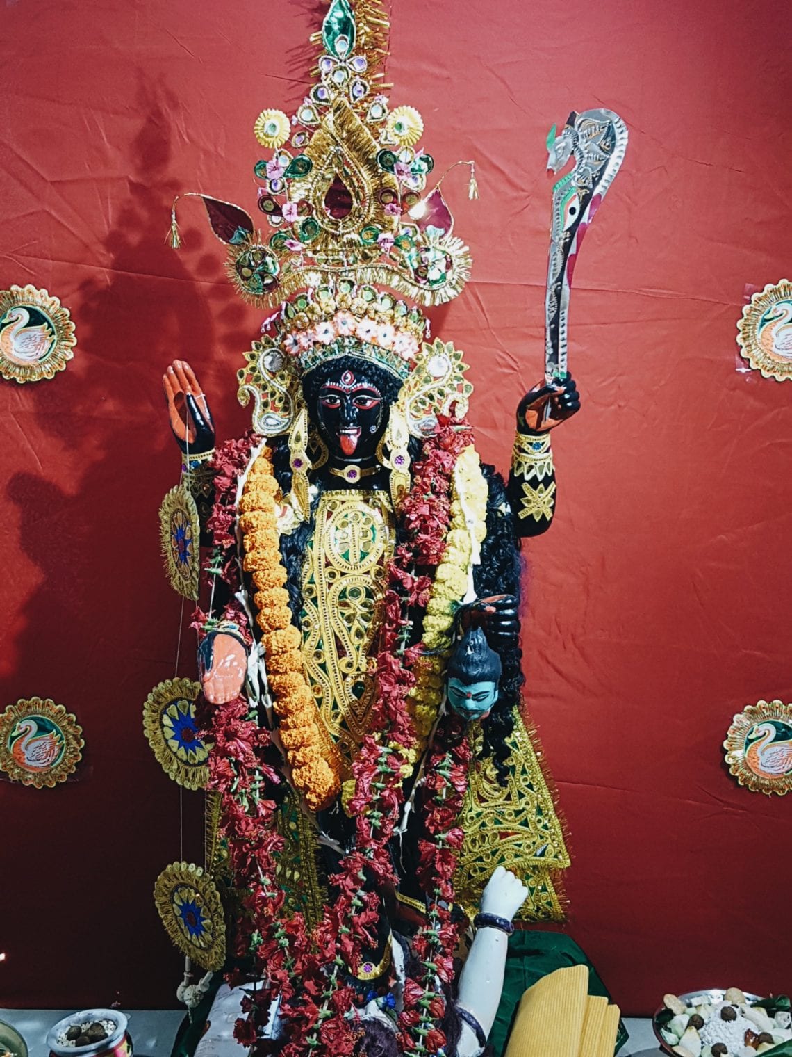 That was my father’s 80th. As eccentric and dramatic as the family I have been born into, concluded by listening to the priest chanting mantras at the foot of the idol of Kali, the intense avataar of the Goddess Durga as she goes about vanquishing evil from this earth for all Bengalis. Oh and yes, my ma did finally break her fast which I thought she had done anyway at Bar B Q with a fruit punch and tiny cheese puffs.